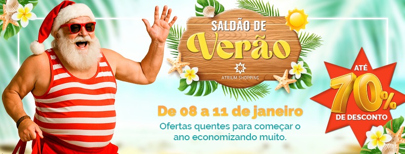 O Atrium Shopping (administrado pelo Grupo AD) realiza, de 8 a 11 de janeiro, o Saldão de Verão, reunindo ofertas especiais em diversas lojas, com descontos que podem chegar a 70%. A campanha é uma oportunidade para o público renovar o guarda-roupa, adquirir produtos de diferentes segmentos e iniciar o ano com economia. Durante o período, os visitantes encontram ofertas quentes para começar o ano economizando muito, incluindo promoções em produtos que fizeram sucesso nas compras de Natal e Ano Novo, como itens de moda, calçados, acessórios, presentes, beleza, eletrônicos e outros segmentos. As condições especiais são válidas nas lojas participantes e por tempo limitado. Além dos descontos, o Atrium Shopping preparou ações interativas para tornar a experiência ainda mais divertida. Personagens circulam pelos corredores do shopping, interagindo com os clientes e promovendo brincadeiras que podem render vouchers para quem participar. No sábado, a programação ganha um toque especial com a presença do Papai Noel, que retorna para uma ativação exclusiva. O público poderá tirar uma foto com o bom velhinho em um painel instagramável e levando a lembrança impressa gratuitamente para casa. Para participar, é necessário apresentar um cupom fiscal de qualquer valor, referente a uma compra realizada no mesmo dia. A ação é limitada a uma foto por pessoa. Para Luciano Abilio, coordenador de marketing do Atrium Shopping, o saldão é uma forma de ampliar o acesso às boas oportunidades logo no início do ano. “É o momento ideal para aproveitar preços reduzidos em produtos desejados, inclusive aqueles que ficaram das datas comemorativas de fim de ano. O Atrium reúne variedade, praticidade e descontos que fazem a diferença no orçamento do consumidor”, destaca. Além das promoções, o Atrium Shopping oferece uma experiência completa, com opções de alimentação, lazer e fácil acesso, tornando o passeio ainda mais conveniente para toda a família. Serviço Atrium Shopping – Saldão de Verão Data: de 8 a 11 de janeiro Descontos: até 70% nas lojas participantes Local: Rua Giovanni Battista Pirelli, 155 – Vila Homero Thon – Santo André – SP